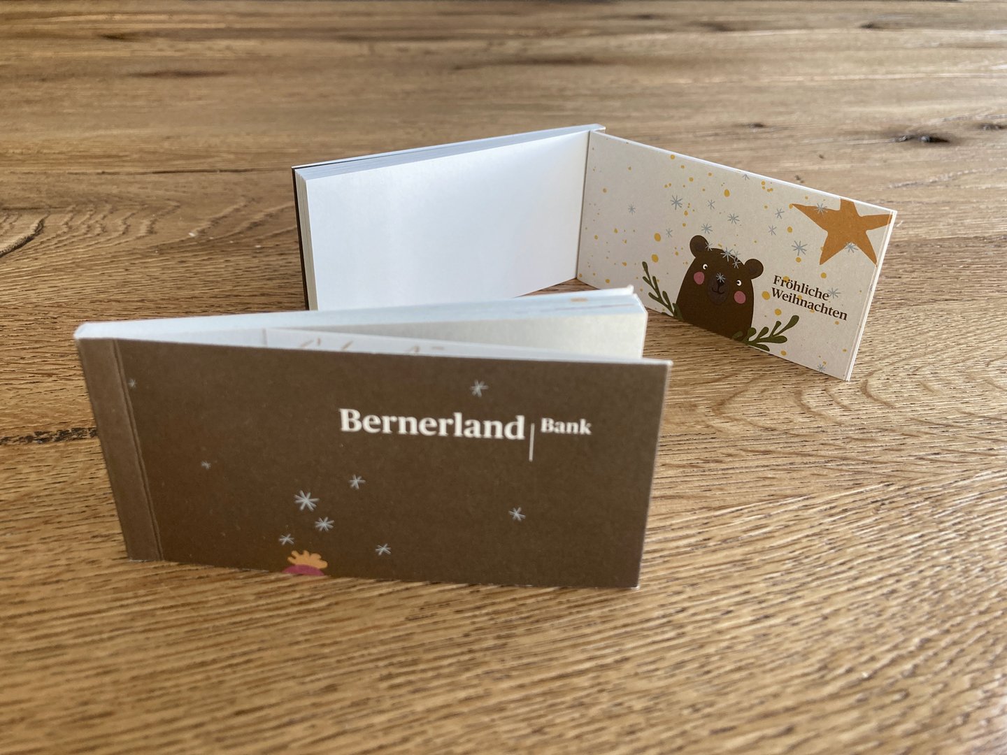 Für die Bernerland Bank entwickelte Himmelblau ein hochwertiges Kartenkonzept und das weihnachtliche Daumenkino. Die Umsetzung verbindet Wertschätzung mit einer klaren, markengerechten Gestaltung.