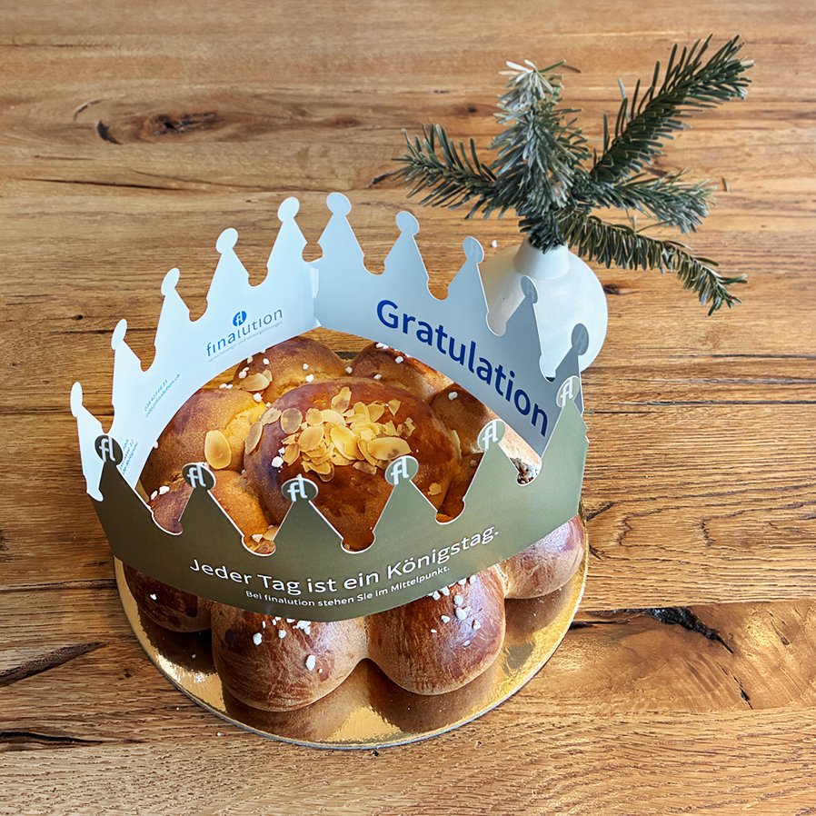 Himmelblaue Arbeiten: Beratung, Ratgeber-Broschüre BVG, Angebotsfolder BVG, Rollups, Königskrone für den Königskuchen, Webauftritt und mehr