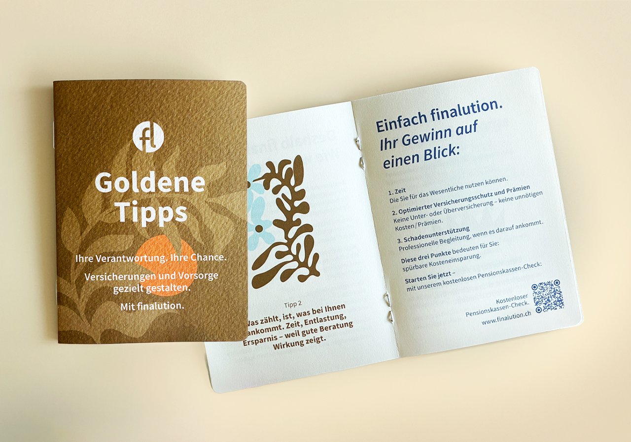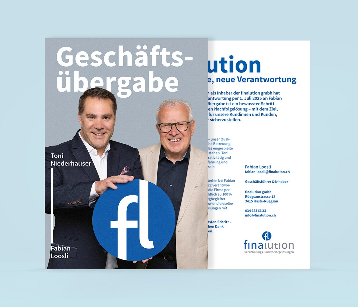 «Wir sind einzig den Interessen unserer Kunden verpflichtet.» Genau dieses Prinzip prägt finalution, weshalb das Unternehmen hervorragend zu uns passt. Die Werbeagentur Himmelblau begleitet finalution in den Bereichen Beratung, Grafikdesign und Webauftritt, wobei die Idee dahinter den Unterschied ausmacht.