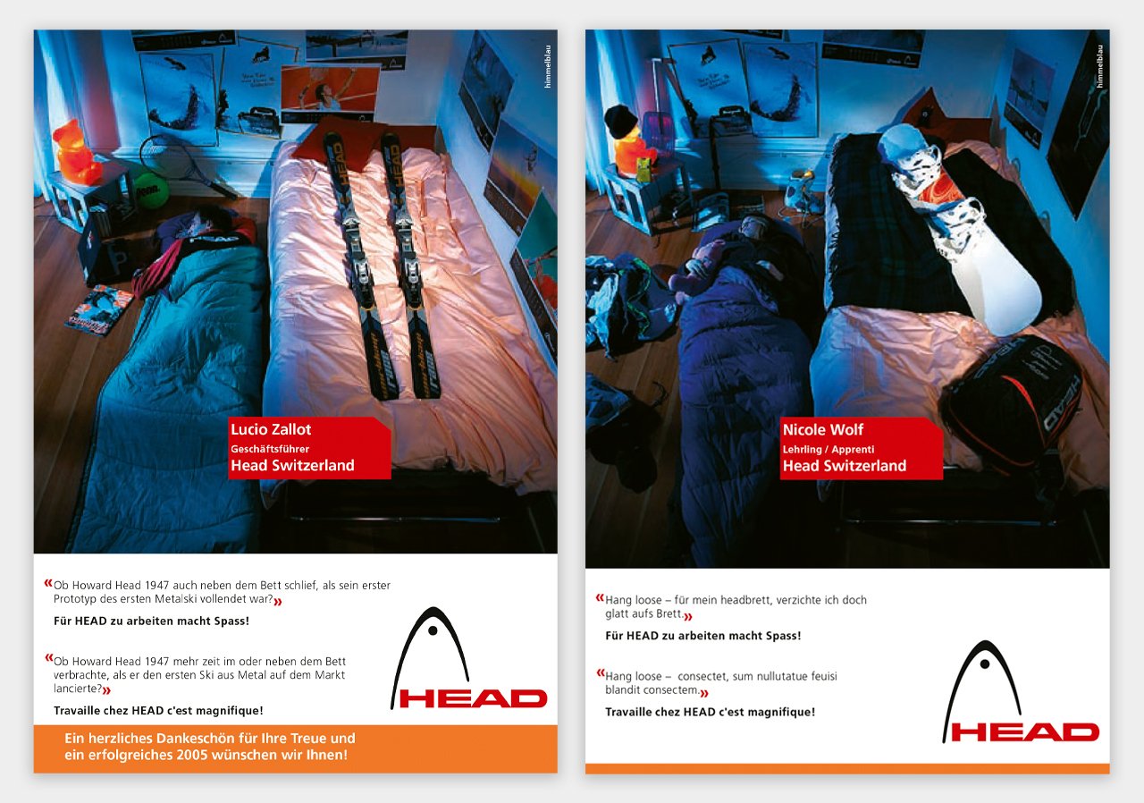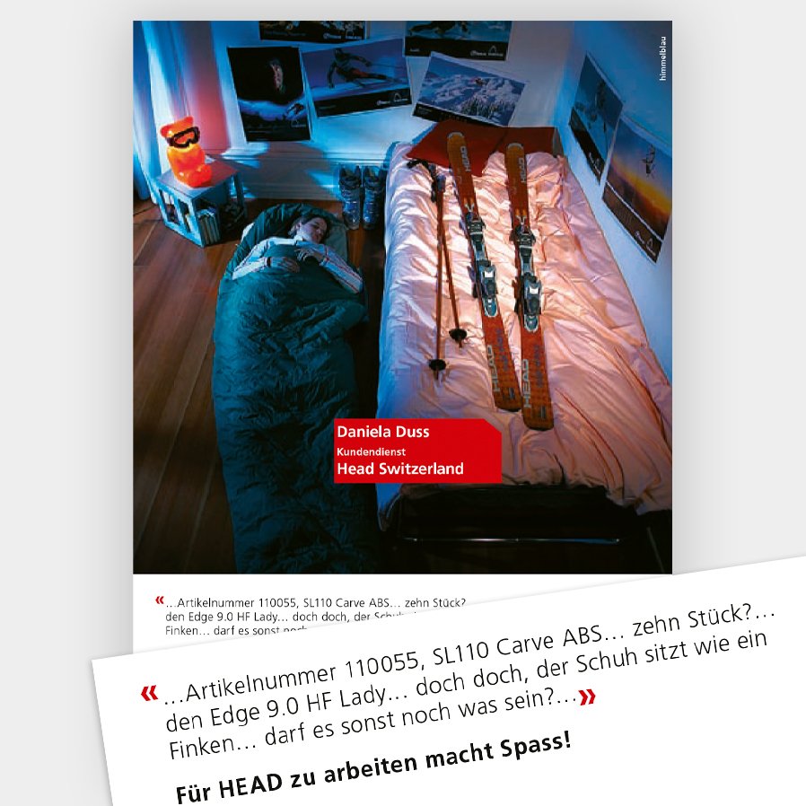 Wir geben es zu: Wir lieben HEAD. Und das nicht erst seit 2005, als wir für HEAD zu arbeiten begannen. Neben Preislisten für die Schweiz, Deutschland und Österreich unterstützten wir HEAD auch in der Kommunikation, etwa mit einer Imagebroschüre für HEAD Switzerland oder mit Inseraten.