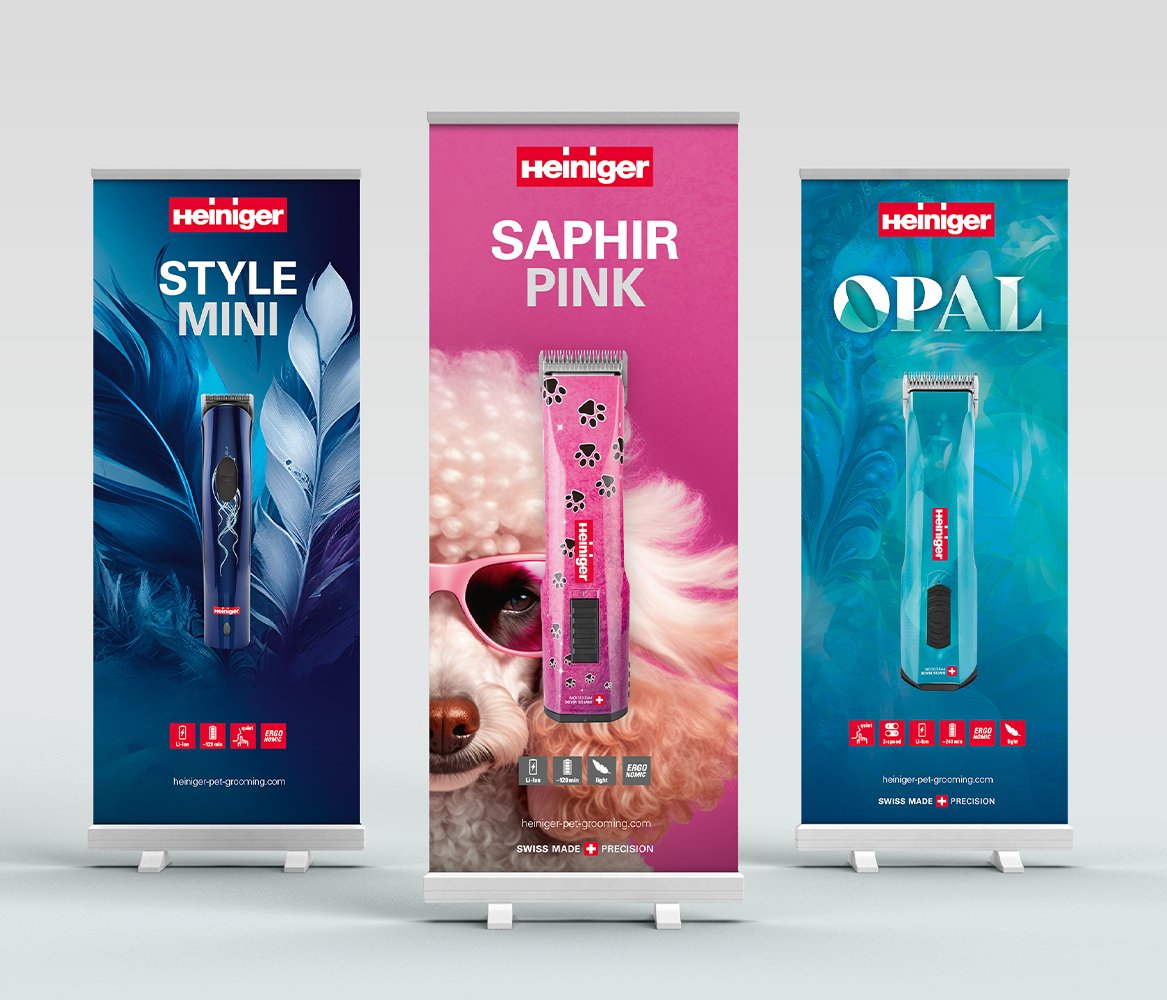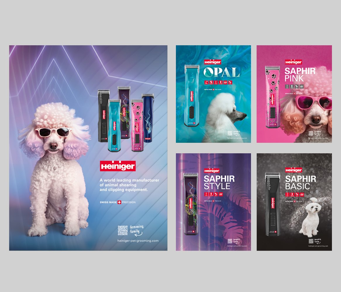 Starke Markenkommunikation für die Heiniger AG. Seit über einem Jahrzehnt begleiten wir die Heiniger AG im Bereich Heiniger Animal. Mit klarer Strategie, frischen Ideen und konsequenter Umsetzung stärken wir die Markenkommunikation nachhaltig. Die Schermaschinen und Trimmer stehen weltweit für Präzision sowie Qualität Made in Switzerland. Mit durchdachtem Grafikdesign, überzeugenden Verpackungen und prägnanten Messeauftritten machen wir diese Kompetenz sichtbar und schaffen ein stimmiges Markenerlebnis.