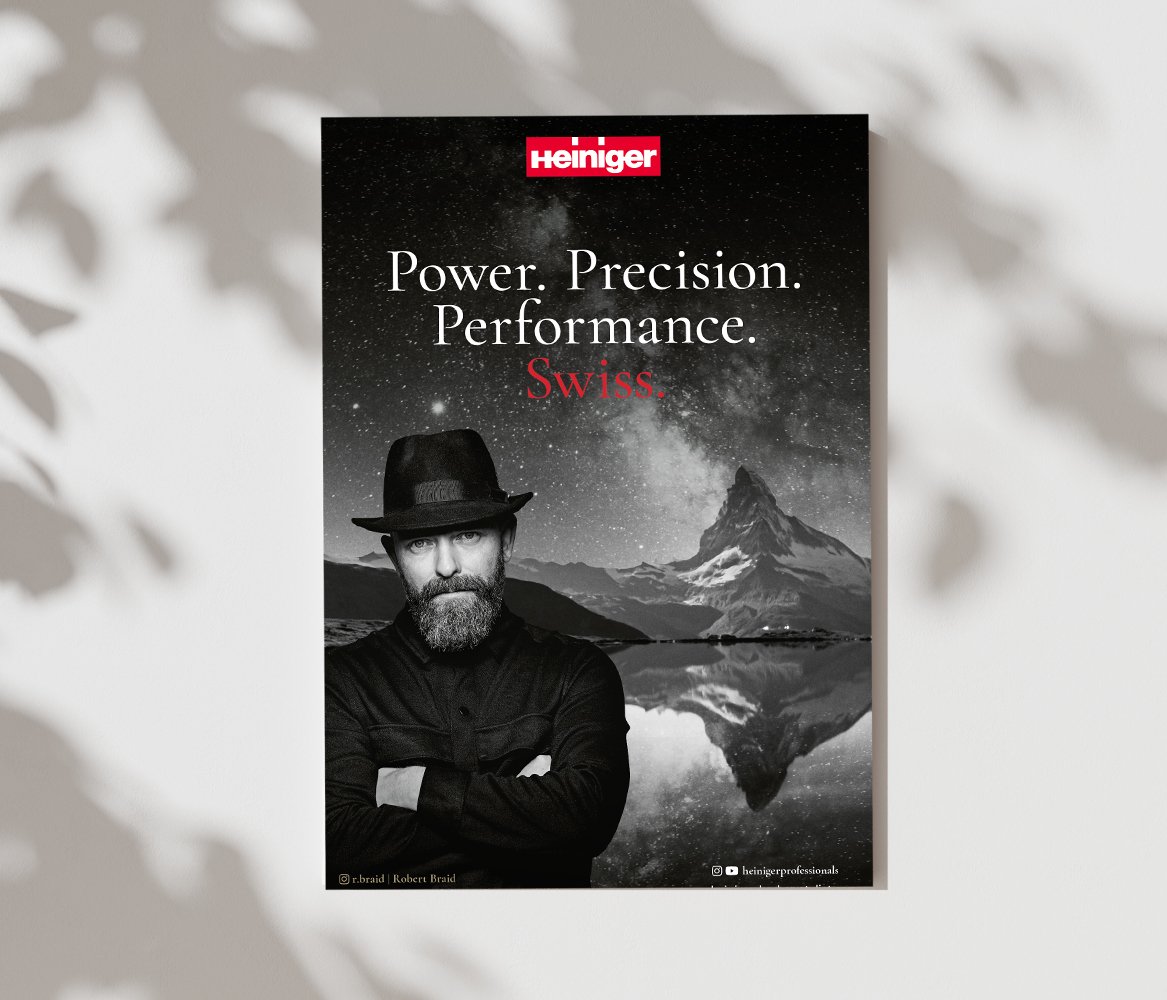 Das Erscheinungsbild richtet sich an professionelle Anwender. Es transportiert Charakter, Präzision und Qualität. Werte, die zur Marke Heiniger passen.