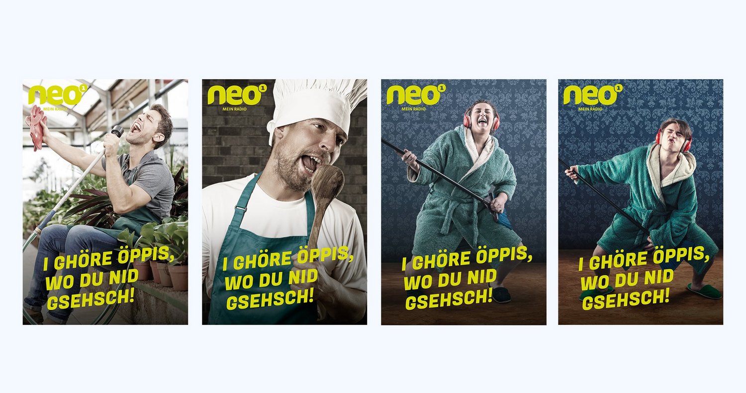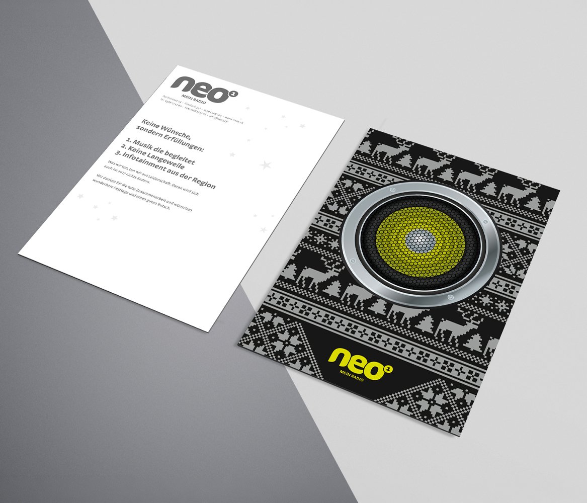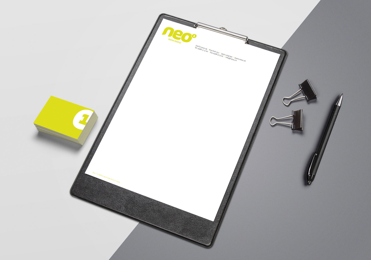 Für radio neo1 durften wir einen prägnanten Markenauftritt entwickeln, der gehört und gesehen wird. Von Logo und Corporate Design über Geschäftsdrucksachen bis zur auffälligen Kampagne entstand ein Auftritt, der Wiedererkennung schafft und die Marke radio neo1 klar positioniert.