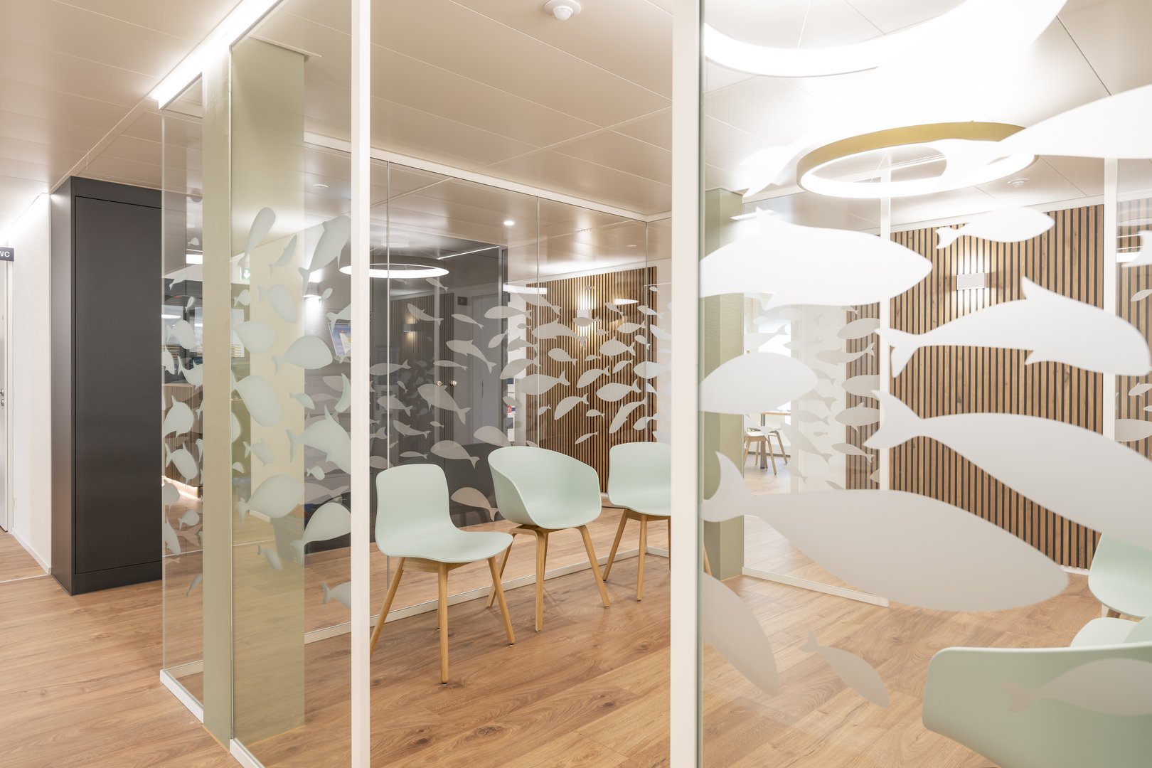 Himmelblaue Arbeiten: Wort-Bildmarke, Briefschaft, Visitenkarten, Postkarte, Website, Praxisbeschriftung, Signaletik in der Praxis, Arbeitsbekleidung, Bildidee und Foto-Regie