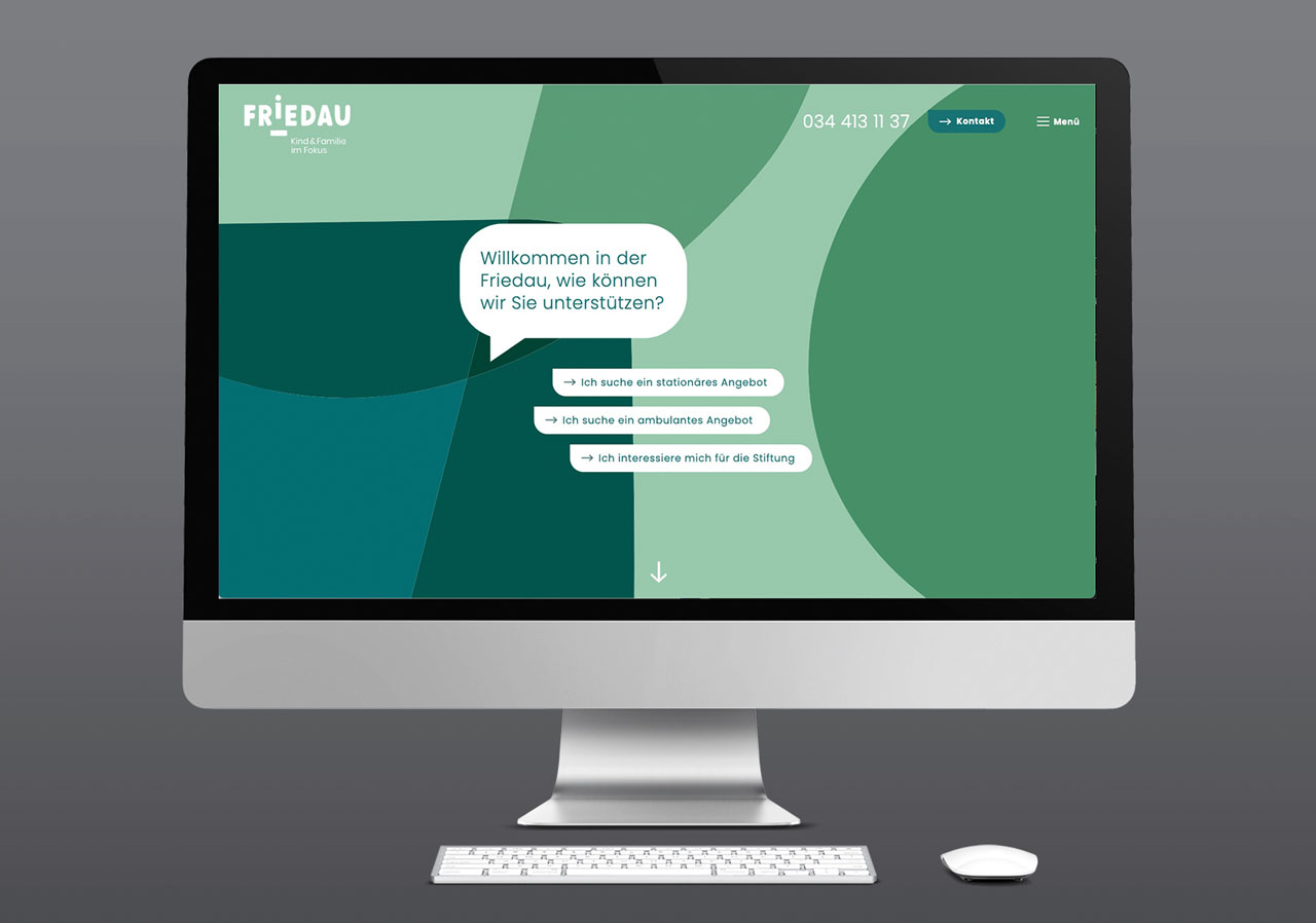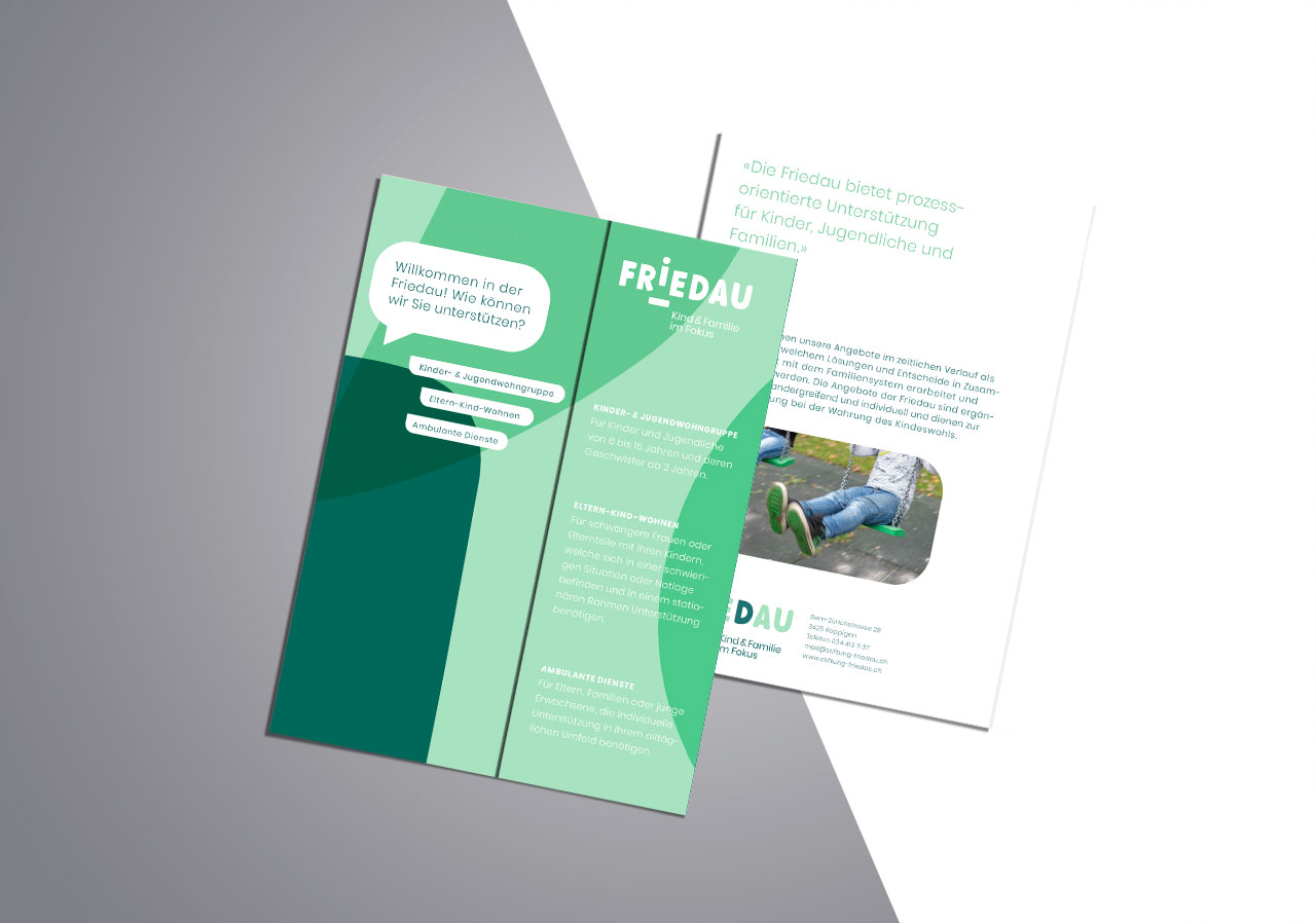 Für die Stiftung Friedau entwickelten wir einen frischen Markenauftritt. Vom Logo bis zur visuellen Sprache begleiteten wir das Projekt gestalterisch und kommunikativ. Das Signet steht für Schutz und Geborgenheit, die Kinder, Jugendliche und Familien in der Friedau erleben dürfen, während die weichen Formen und Flächen die Freundlichkeit des Erscheinungsbilds konsequent tragen.