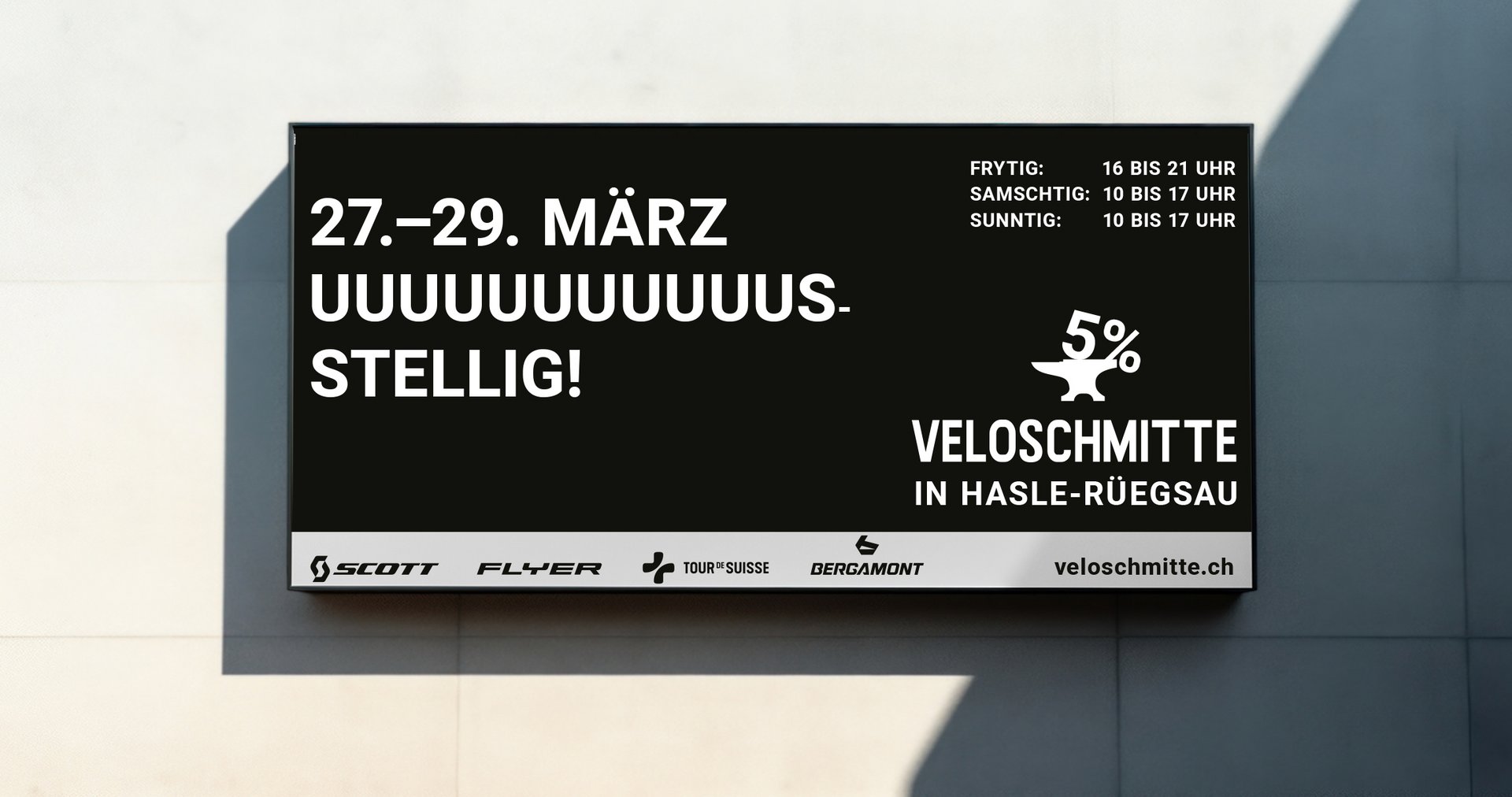 Für die Veloschmitte dürfen wir verschiedene Kampagnen sowie weitere Branding- und Gestaltungsarbeiten umsetzen, analog und digital. So entsteht ein Auftritt, der die Begeisterung fürs Velofahren sichtbar macht. Und ja: Auch bei uns ist ein tolles Gravelbike der Veloschmitte im Einsatz.